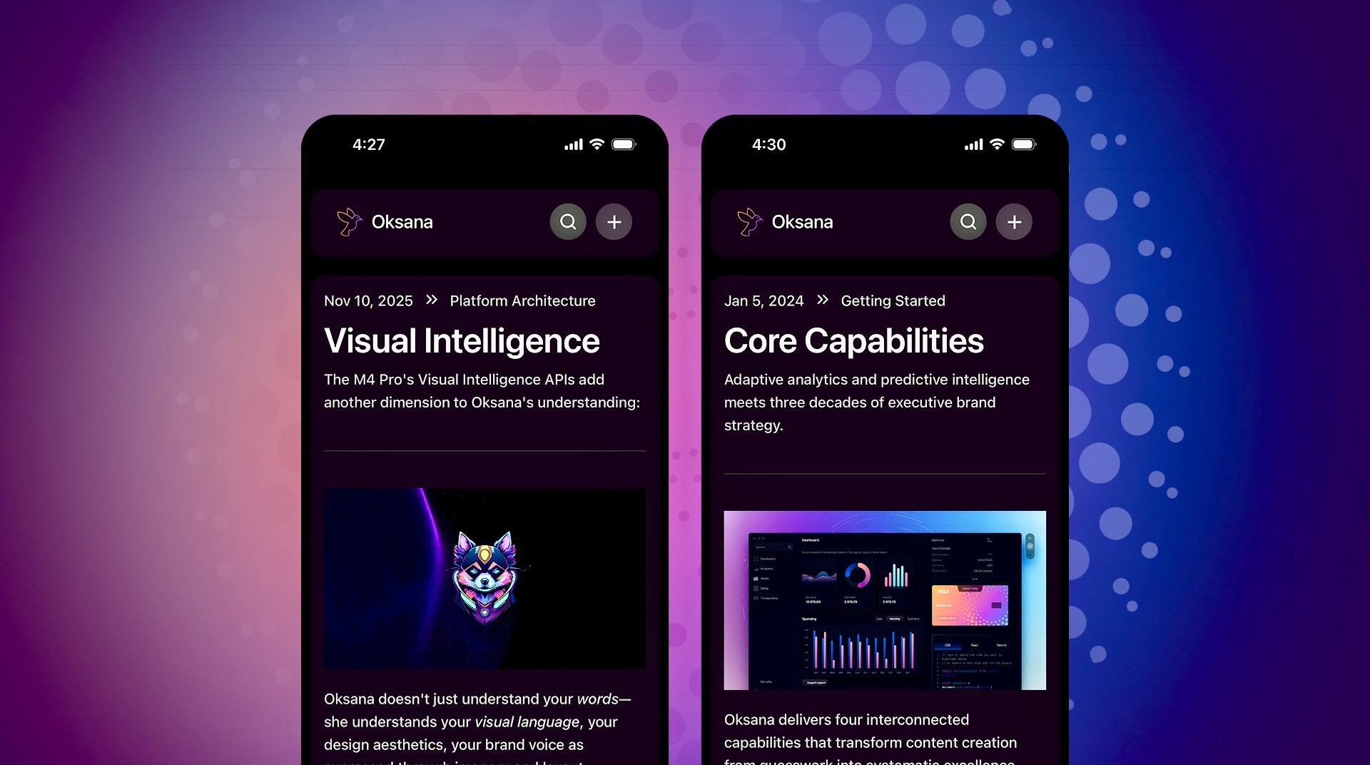 Oksana is different. Oksana is actual intelligence. Authentic intelligence. Apple Intelligence.